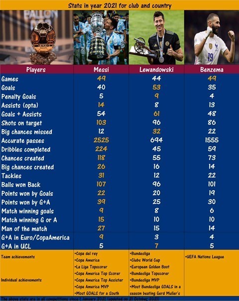 2021 발롱 유력 후보, ‘메시 VS 레반도프스키’ 스탯 비교