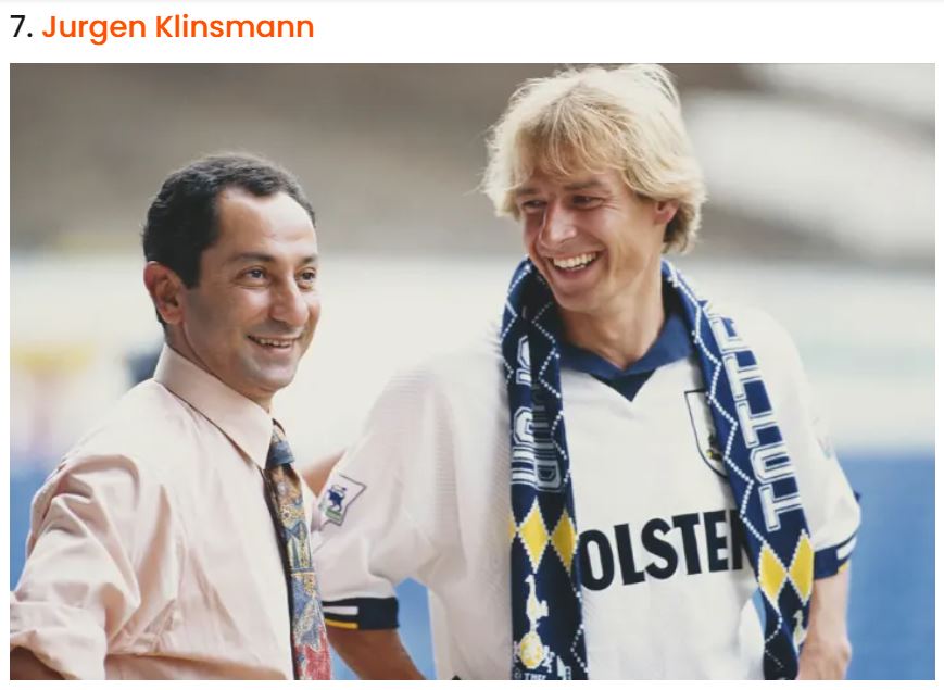 토트넘은 월드 클래스 선수들을 배출하는데 있어 언제나 최고의 클럽들 중 하나였다. 토트넘의 전성기는 화려한 공격축구를 펼치며 지난 수년간 팬들을 매료시켰다. 몇몇 정말 특별한 선수들이 토트넘에서 두각을 나타냈다.