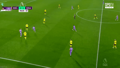 경기 막바지 손흥민의 미친 드리블로 부터 만들어졌던 추가골 기회...