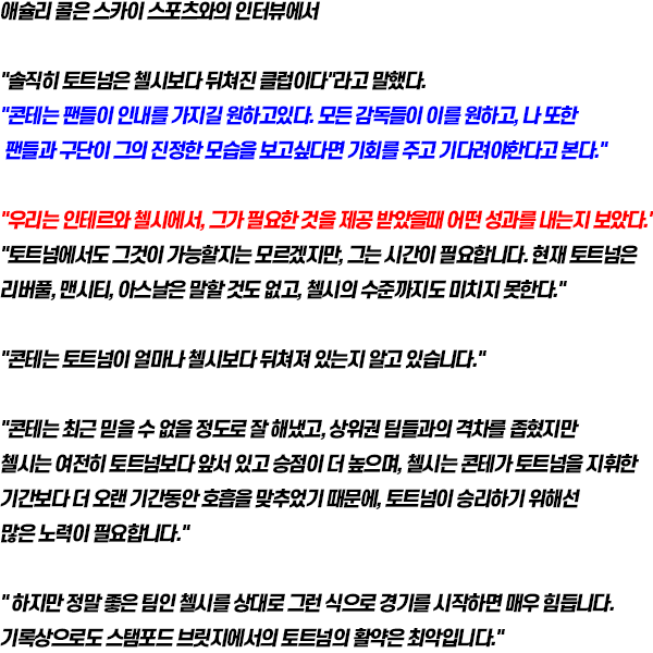 타팀 레전드, 그것도 첼시 + 아스널 레전드가 이런 말을 할정도라니......ㄷㄷ....