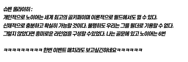 [뮌헨키퍼 : "이론적으로 OOO는 미드필더 가능하다"]
