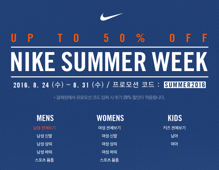 | 나이키 공홈 SUMMER WEEK 최대 50% 할인 | |
