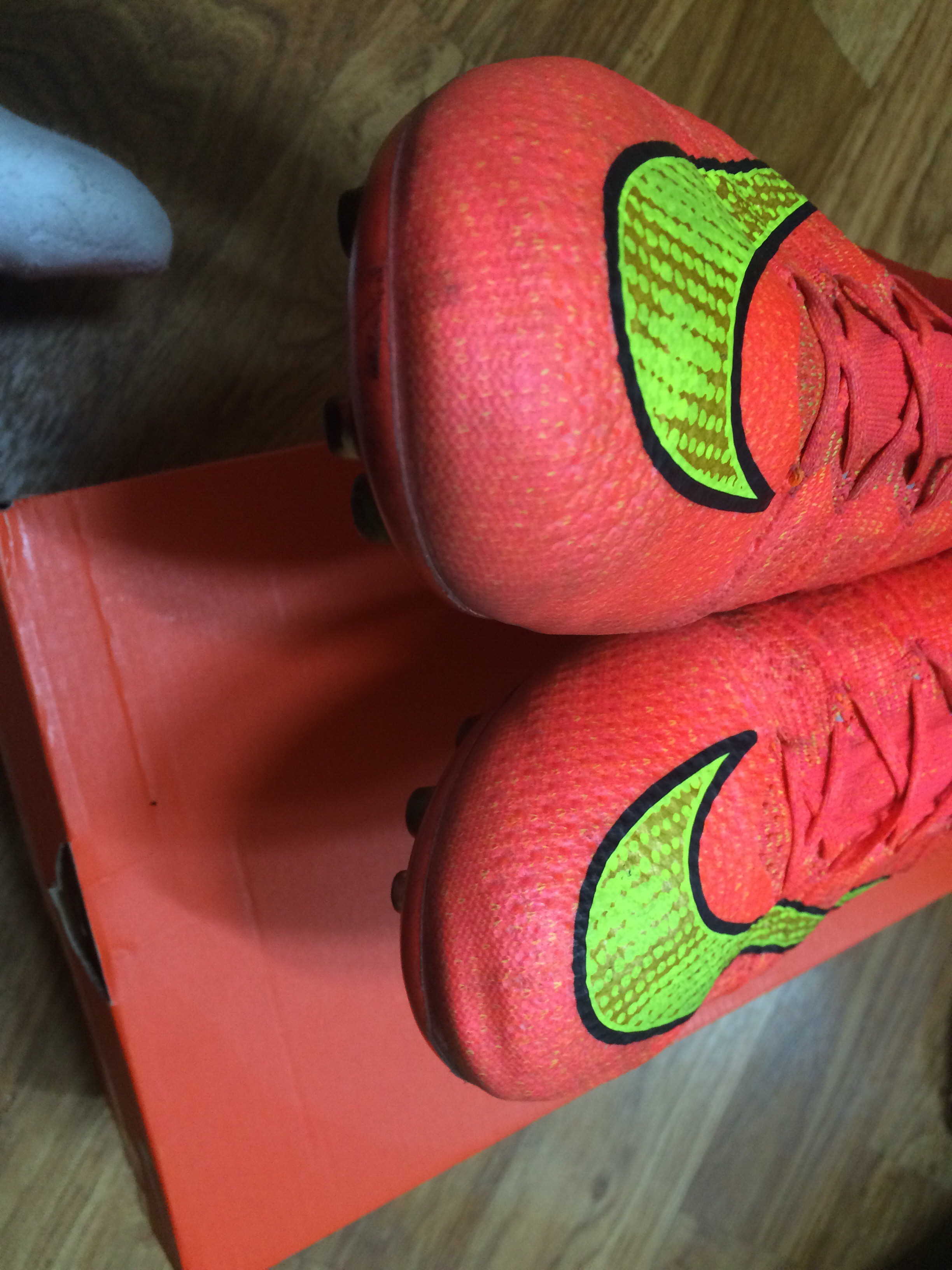 제가 선택한 슈플 제품은 런칭 모델인데요. 런칭 모델인만큼 나이키에서 많은 공을 들였다는 것을 알 수 있습니다. 우선 스우시는 네이마르 하이퍼 베놈에서 쓰인 스우시가 그대로 사용되었습니다. 나머지 어퍼는 빨간색과 다홍색의 색감 사이에 있는 오묘한 색감으로 보입니다. 그치만 정말 예쁩니다! 사실 저는 축구화를 볼 때 가장 1순위는 디자인입니다. 그만큼 디자인을 중요시하는데요. 슈플 런칭 모델은 비록 가격이 비쌌지만 색감에 매료되어 구매할 수밖에 없었습니다. 하얀색 하프 삭스와 정말 궁합이 잘 맞구요. 국대 트레이닝 의류들과도 참 예쁘더라구요. 축구하러 나가면 주변에서 축구화 얘기만 할 정도로 시선을 많이 받습니다.