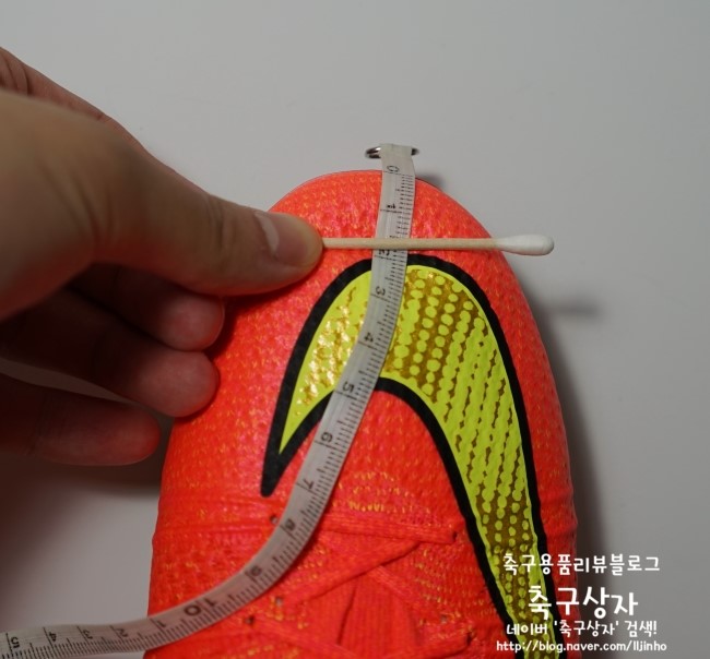 나이키 인솔은 쓰지 않는게 좋을것 같습니다... 하이퍼베놈부터해서 티엠포, 마지스타까지 요즘 나이키 사일로는 모두 동일한 인솔을 쓰는것 같습니다. 평소 스페바를 써서 그런지 너무 미끄럽고 발이 안에서 놉니다. 예전 나이키와는 다르게 인솔에는 별 투자를 안하는것 같네요. 물론 경량화를 위해서 아무기능없이 내놓았겠지만 이렇게까지 내놓아버리면 축구화 전체기능을 제대로 느끼지도 못할텐데 말이죠. 제 실측 발사이즈는 236~237 이고 주문한 슈퍼플라이 사이즈는 245입니다. 평소 발가락이 꽉끼는것보단 여유있는걸 좋아해서 250사이즈를 보통 신는데 슈퍼플라이는 남아도 너무 남아서 한사이즈 다운했더니 딱 제사이즈가 되었습니다.