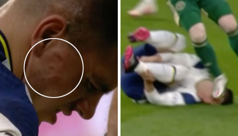 [축구화로 얼굴 밟힌 로셀소.gif] 하.. 얼굴에 상처까지 남 ㅠㅠ 이거 의도가 좀 있어보이는데 노카드로 끝남..
