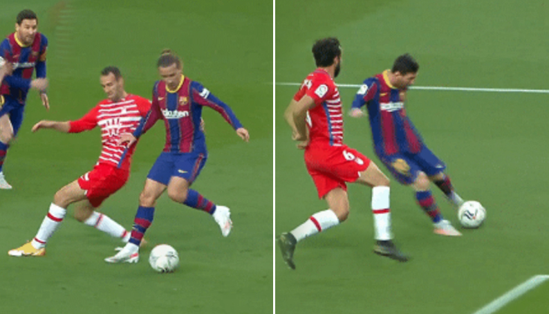 그리즈만의 환상적인 어시에 선제골 넣는 메시.gif