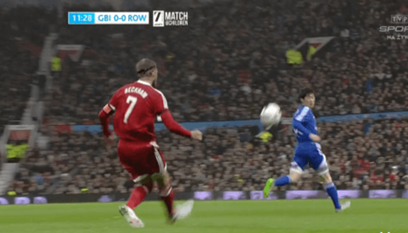 [자선경기에 출전한 베컴의 크로스 수준.gif] 영국팀 vs 세계올스타 자선경기에서 보여준 크로스 크로스는 정말 아트수준 ㄷㄷ