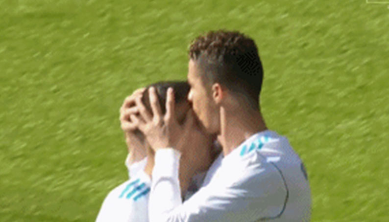 레알 시절 호날두가 유독 예뻐했던 선수.gif