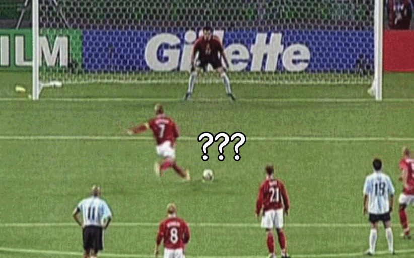 [베컴의 클라스를 보여주는 초고난이도 'PK 스킬'ㄷㄷ.gif] 누가봐도 왼쪽으로 찰 모션이었지만 임팩트 직전 오른쪽으로 꺾어 참ㄷㄷ
