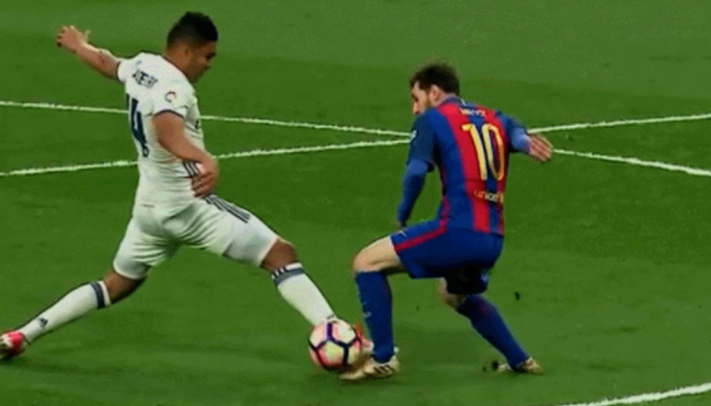 카세미루에게 1대1 연습시켜주는 메시.gif