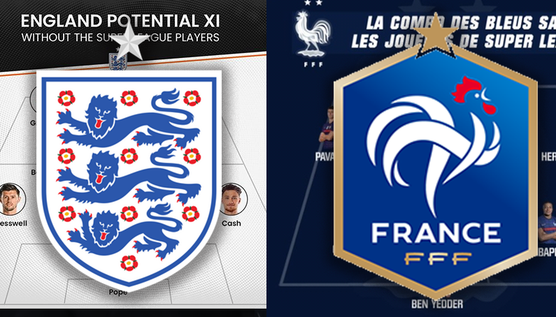 [슈퍼리그 참여 구단 선수들 제외한 프랑스VS잉글랜드] 와.... 많이 빠져도 엄청 강하네ㄷㄷㄷㄷ 여러분은 어느 팀이 더 강해보이나요???