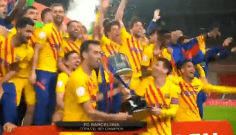 [값진 코파델레이 우승컵 드는 메시와 바르샤.gif] 31회 우승으로 코파 델레이 최다 우승팀이 된 바르셀로나