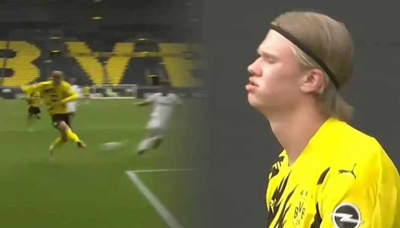 [경기가 잘 안풀리는 홀란드.gif] 골대 옆으로 살짝 빗나가는 슈팅 공이 빠져버린 퍼스트터치