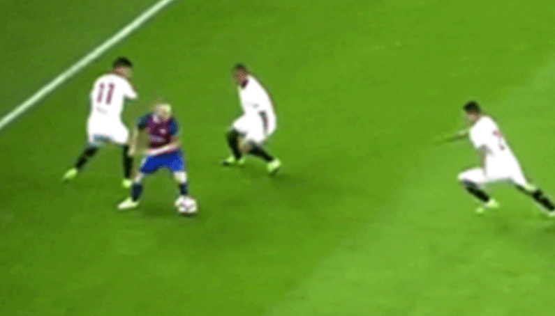 [상대를 화나게 하는 이니에스타의 탈압박.gif] 수비 3명 상대로 뺏기지 않는 이니에스타 출처 : 뉴락싸_라시현