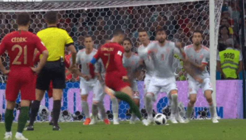 월드컵에서 보여줬던 호날두의 보기 드문 프리킥.gif