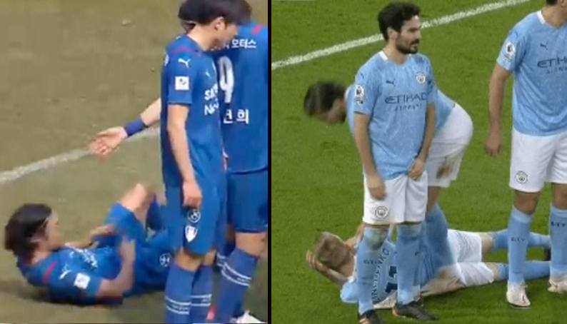 K리그는 '눕기 금지', 국제축구평의회(IFAB)는 ”허용되는 전술적 행동”