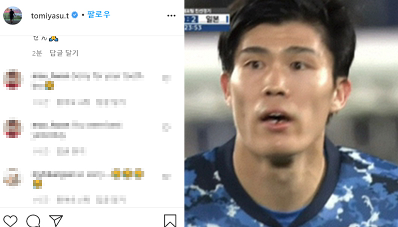 [현재 일본 토미야스 선수 인스타 상황.jpg] 한국인들이 인스타 댓글로 이빨 걱정 + 사과하는 중...