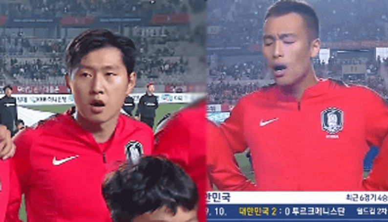 [이번 한일전 김신욱이 뽑히지 않아 볼 수 없는 아쉬운 장면.gif] 김문환 웃음 참는중 ㅋㅋㅋㅋㅋㅋㅋㅋㅋㅋ 이강인과 '싱어송 스트라이커' 김신욱의 콜라보 애국가와 속 시원한 몸통박치기를 못보게된게 정말 아쉽네요...