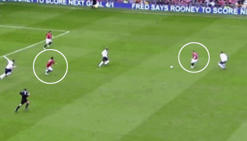 [21살의 어린 선수들이 만든 완벽한 역습.gif] 역습 전개, 속도, 마무리 모두 완벽한 다이내믹 맨유. 루니 호날두는 당시 21세
