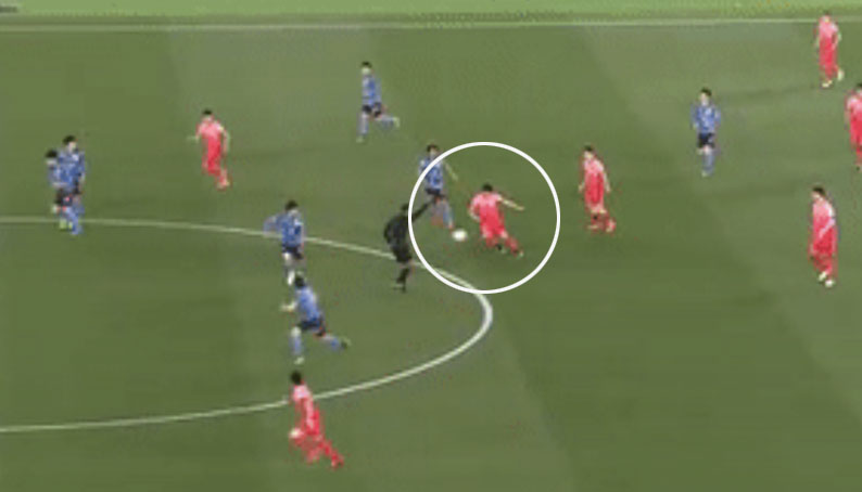 [개인 돌파에 속수무책.. 일본의 두 번째 득점.gif] 아.. 이번 거는 너무 쉽게 뚫렸다.. 가마다의 단독 드리블에 공간을 열어주네요