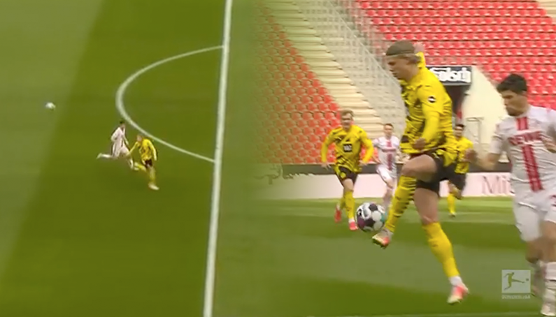 [한 방에 골찬스 만드는 홀란드 '퍼스트터치'.gif]