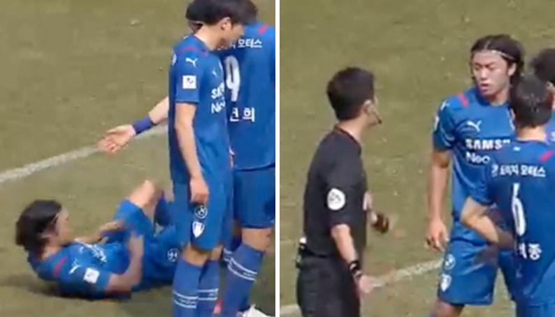 "K리그에서는 눕지 마!" 프리킥 벽 일으켜 세운 심판