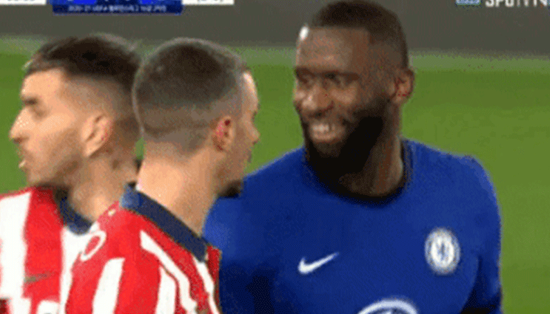 오늘 에르모소와 신경전 벌이는 뤼디거.gif
