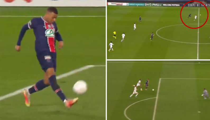 [미친 스피드와 로빙슛으로 득점하는 음바페.gif] 수비보다 뒤에서 뛰기 시작해서 앞질러버림ㄷㄷ 마무리 로빙슛의 여유까지! 음바페는 이 경기에서 2골을 기록했습니다