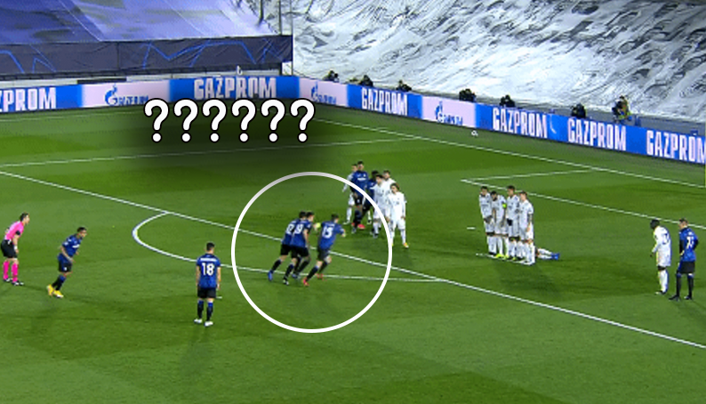 레알 마드리드 상대로 특이한 프리킥 시도해보는 아탈란타.gif
