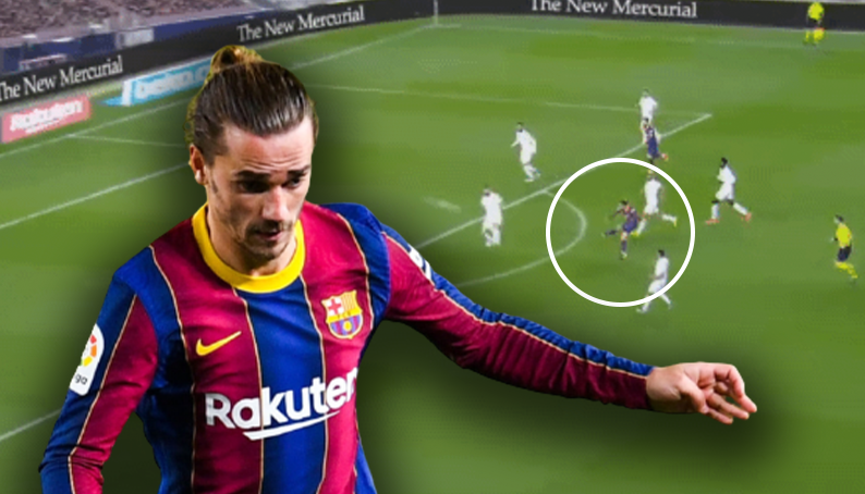 메시와 비슷한 궤적으로 벼락같은 중거리 꽂아버리는 그리즈만.gif