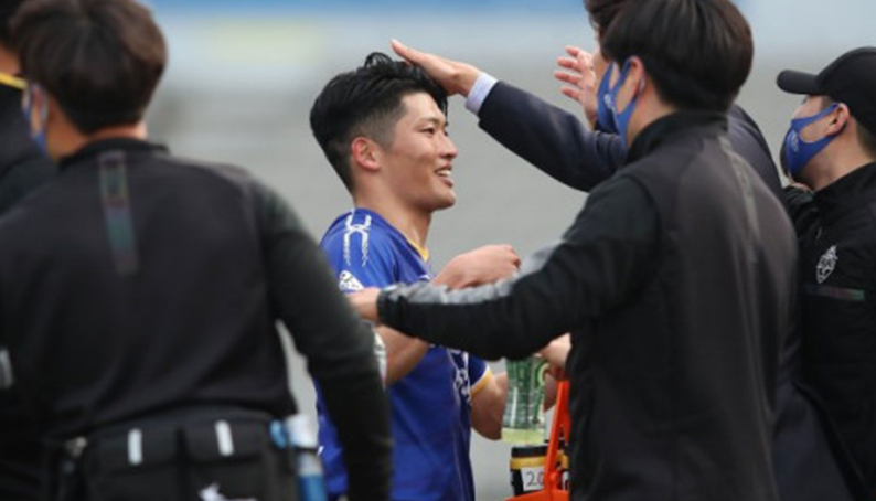 [충남아산 논란의 그 선수, 오늘자 활약상ㄷㄷ.gif] 데이트 폭력으로 인해 일본 J리그에서 퇴출 논란이 있었던 료헤이 선수 오늘 부산과의 경기에서 멀티골 그리고 1어시..ㄷㄷ 출처: 뉴락싸_우울