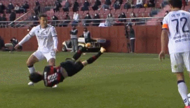 [니킥 제대로 맞은 인천 이태희ㄷㄷ.gif] 오우 저거 진짜 아프겠다..ㄷㄷ 어디 안뿌러졌나?? 출처: 뉴락싸_우울