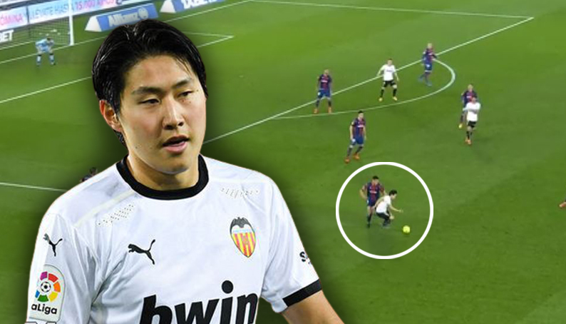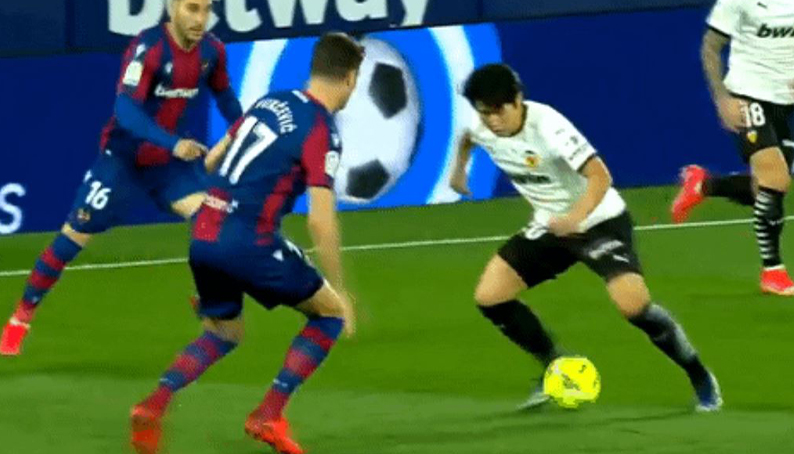 경기 초반 이강인이 보여준 탈압박 드리블 & 프리킥 득ㄷㄷ.gif