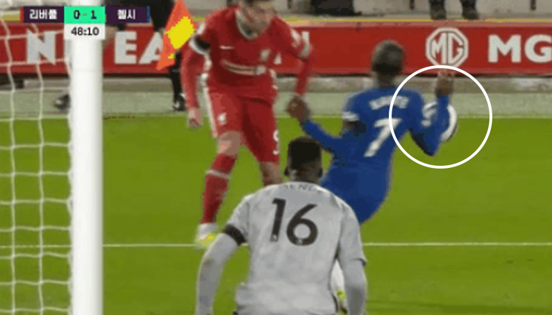 [논란중인 리버풀vs첼시 캉테 핸드볼 장면.gif] 노 PK 판정으로 논란중인 핸드볼 장면 여러분의 생각은 어떠신가요??