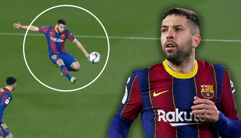 오늘자 골대를 강타하는 호르디 알바의 미친 슈팅.gif