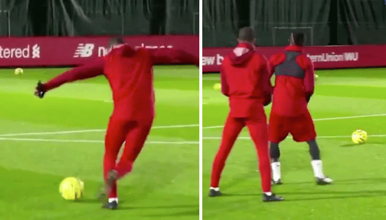 [훈련중 바이날둠의 미친 '백플립플랩' + 마네 감차.gif] 골키퍼 아놀드로 추정 ㅋㅋㅋㅋㅋ