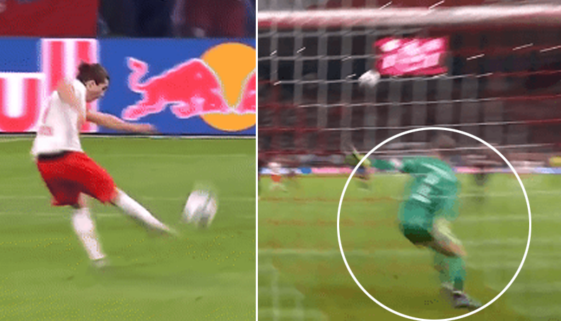무회전 슈팅에 역동작 걸리는 마누엘 노이어.gif