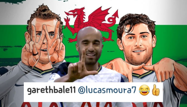 [눈치 없이 베일 쫓아 다니는 모우라ㅋㅋㅋㅋㅋ] 토트넘 인스타에 올라온 베일의 WM 세레머니ㅋㅋㅋ 인스타까지 따라와 'L' 댓글단 모우라 ㅋㅋㅋㅋ 손&베일 : ㅎㅎㅎㅎ 베일 : 아.. 루카스. 그거 아니야