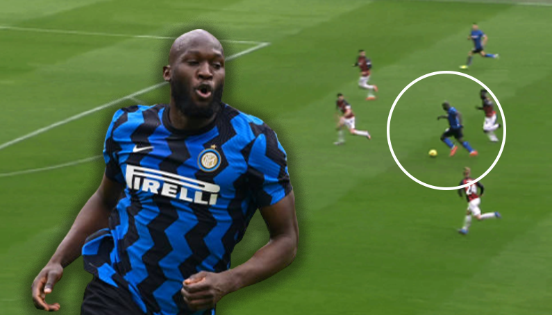 밀란더비에서 탱크같은 모습을 보여주는 루카쿠.gif