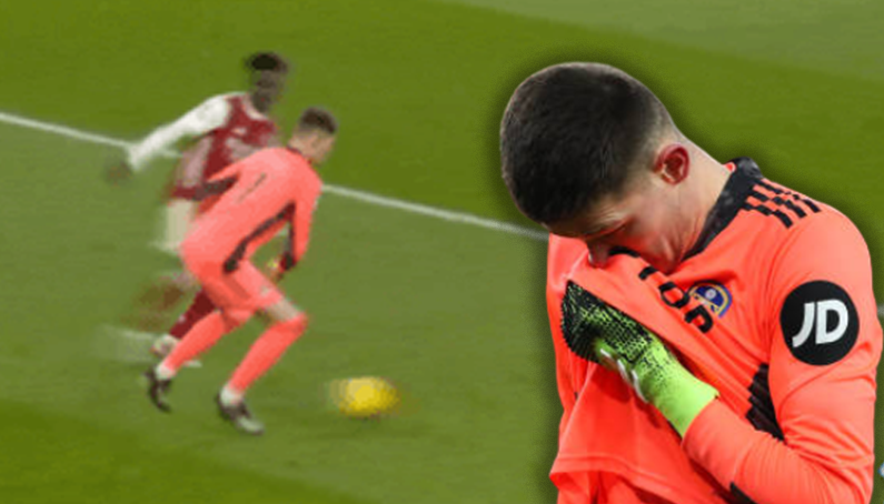 오늘자 어처구니 없는 실수로 PK 내주는 리즈 골키퍼.gif