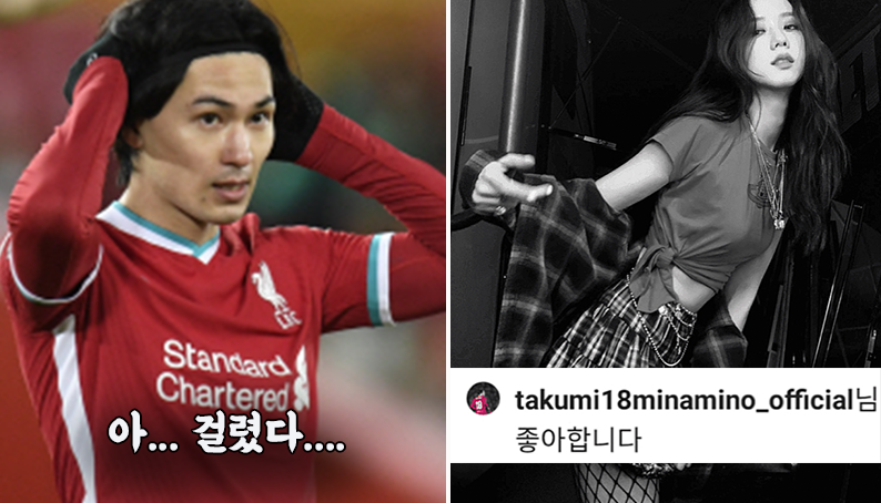 [오늘 데뷔골을 넣은 미나미노의 근황ㅋㅋㅋㅋㅋ] 미모의 여자친구가 있는것으로 밝혀진 미나미노 타쿠미!! 최근 블랙핑크 지수의 인스타그램에 좋아요를 누른것이 포착되었다ㅋㅋㅋㅋㅋㅋㅋ 그런데 며칠이 지난 오늘 다시 확인해보니 좋아요가 없어졌다ㅋㅋㅋㅋㅋㅋㅋㅋㅋㅋ 여자친구한테 걸린 것일까...??????ㅋㅋㅋㅋㅋㅋㅋㅋㅋㅋ 출처 : 지수 인스타그램, 에펨코리아