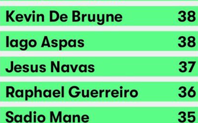 [유럽 5대 리그의 '키패스 TOP 10'] 세트피스 제외한 횟수. 그릴리쉬 미쳤네ㄷㄷ