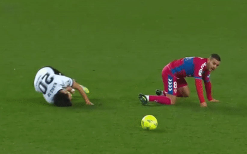 [이강인의 아찔했던 충돌 장면.gif] 너무 고통스러워해서 큰 부상인 줄 ㅠㅠ 부상 없이 일어나서 다행입니다..