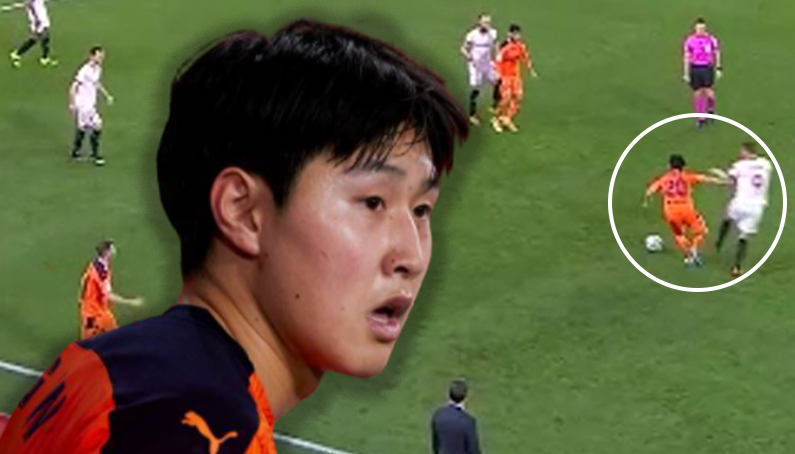 오늘자 미친 볼키핑 스킬 보여주는 이강인.gif