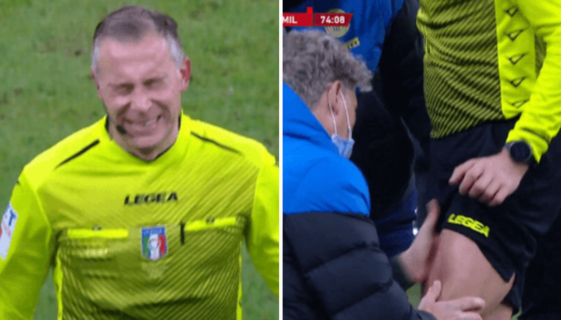 오늘자 밀란더비에서 햄스트링 부상으로 교체당하는 주심.gif
