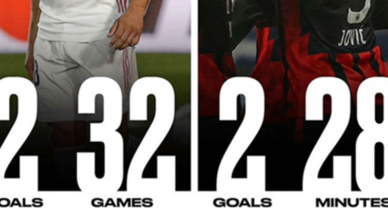 [레알 팬이면 환장할 짤] 32게임 2골의 레알 루카 요비치, 가자마자 28분만에 2골 출처 : 뉴락싸_엄지공주 오무지