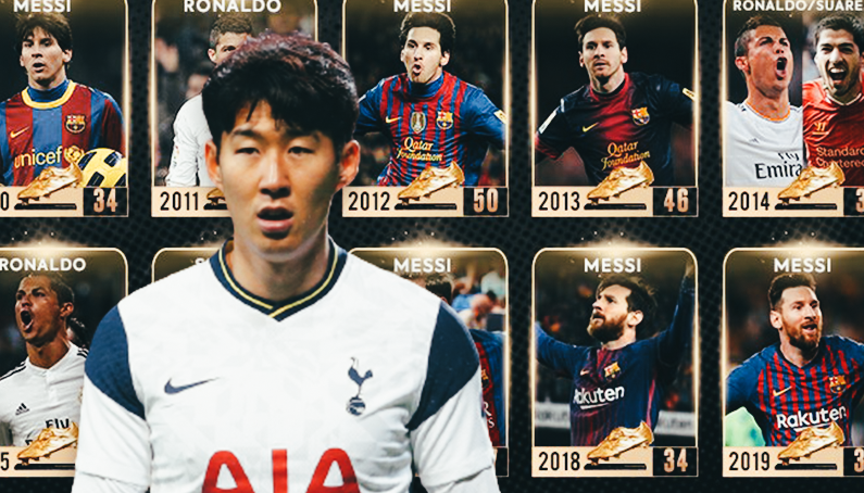 [이번 시즌 유로피언 "골든슈" 현재 순위] 2020/21 EUROPEAN GOLDEN SHOE PLAYER TEAM GOALS POINTS Robert Lewandowski Bayern 20 40 Cristiano Ronaldo Juventus 15 30 Paul Onuachu Genk 19 28.5 Mohamed Salah Liverpool 13 26 Heung-min Son Tottenham 12 24 Kylian Mbappe PSG 12 24 Romelu Lukaku Inter 12 24 Erling Haaland Dortmund 12 24 Boulaye Dia Reims 12 24 Lionel Messi Barcelona 11 22 Dominic Calvert-Lewin Everton 11 22 Jamie Vardy Leicester 11 22 Bruno Fernandes Man Utd 11 22 Andre Silva Frankfurt 11 22 Ciro Immobile Lazio 11 22 Memphis Depay Lyon 11 22 출처 : Footballcritic