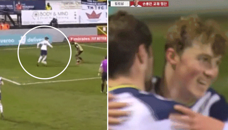 손흥민과 띠동갑인 04년생 토트넘 유스 '디바인'의 데뷔골.gif