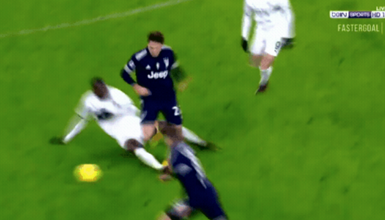 [거친 파울로 넘어지는 유벤투스 키에사.....gif] 오비앙의 거친 태클에 발 찍힌 키에사.... 출처 : 뉴락싸_이나경