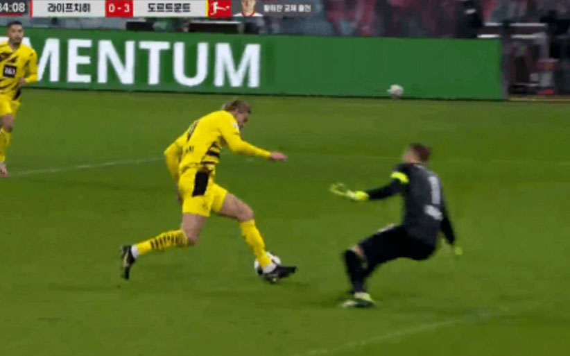 [골 보다 충격적인 홀란드의 단독 드리블 장면.gif] 골 만들기 바로 직전 장면ㄷㄷ 혼자서 다 뚫고 훌륭한 패스까지 넣어줌. 그리고 바로 아래 장면으로 이어짐 홀란드의 첫 번째 득점 장면